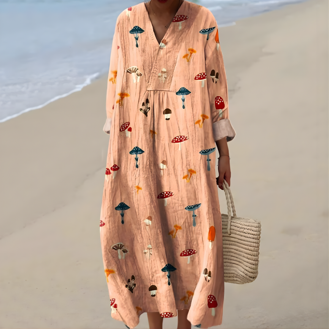 "I just had to snap a photo to show how beautifully this dress fits. The colors are stunning and the fabric feels so light. I feel wonderful in it!"