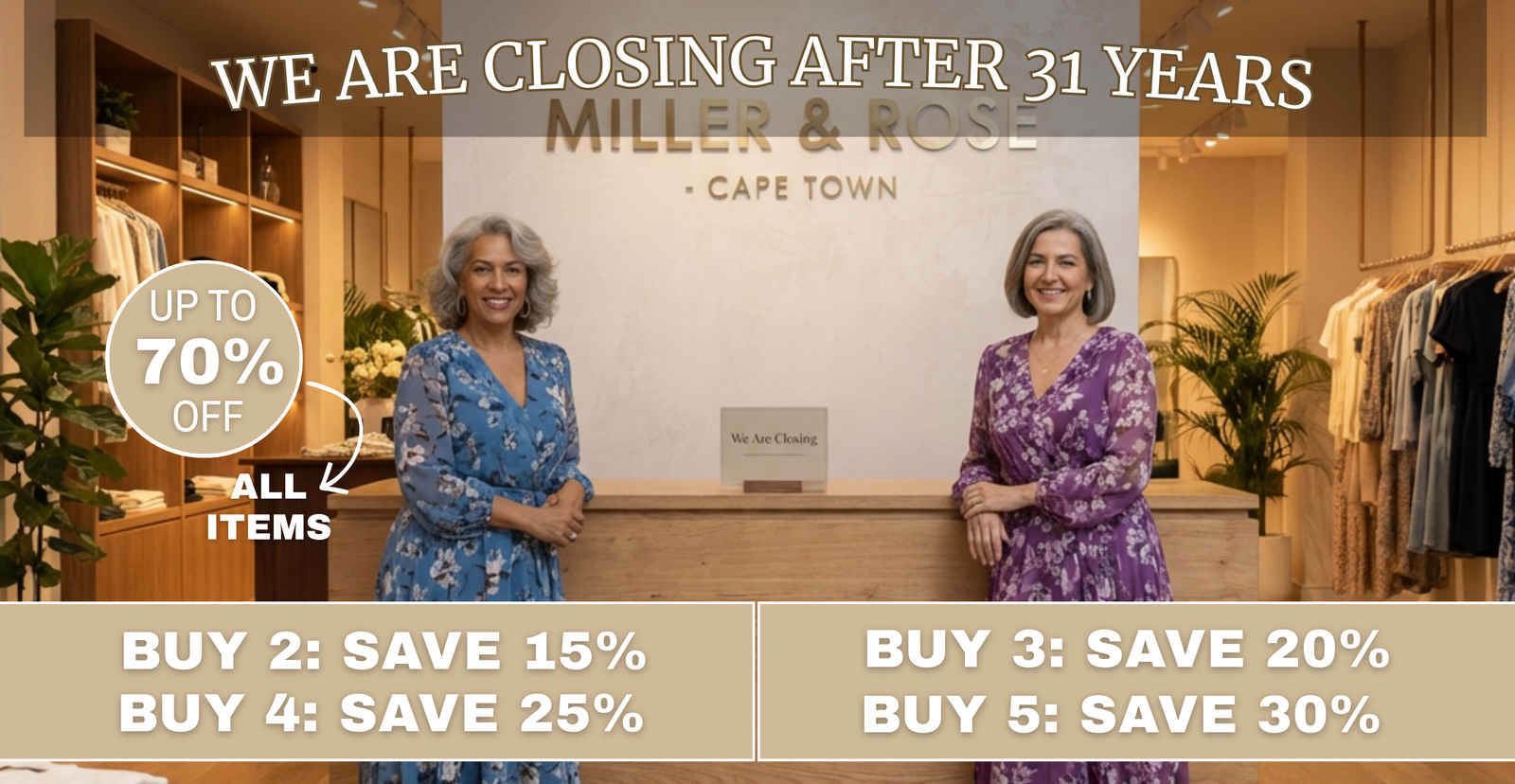 What began as a small fashion store grew into Miller & Rose - a place filled with memories, conversations, laughter, and timeless women’s fashion. For over three decades, you welcomed us into your lives, trusting us for special occasions, everyday moments, and milestones that truly mattered.