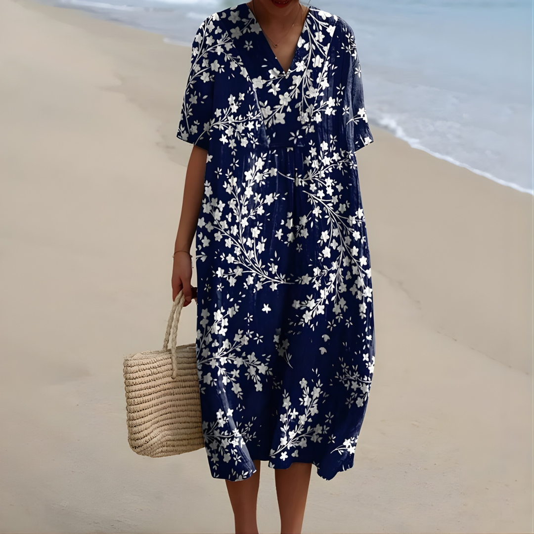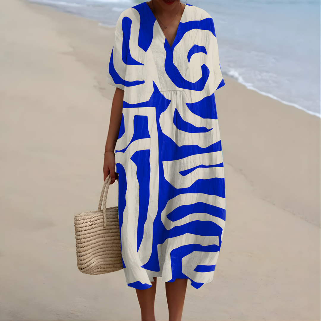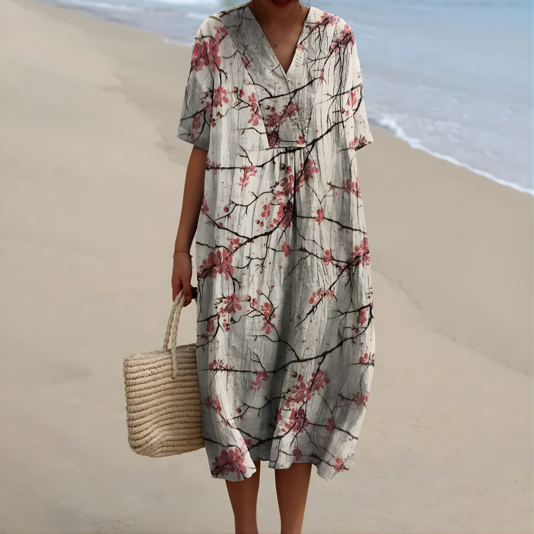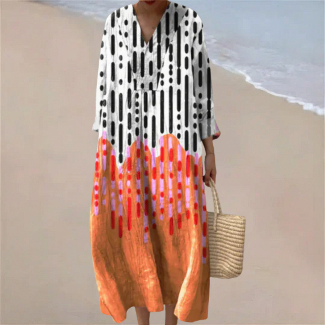 "I just had to snap a photo to show how beautifully this dress fits. The colors are stunning and the fabric feels so light. I feel wonderful in it!"