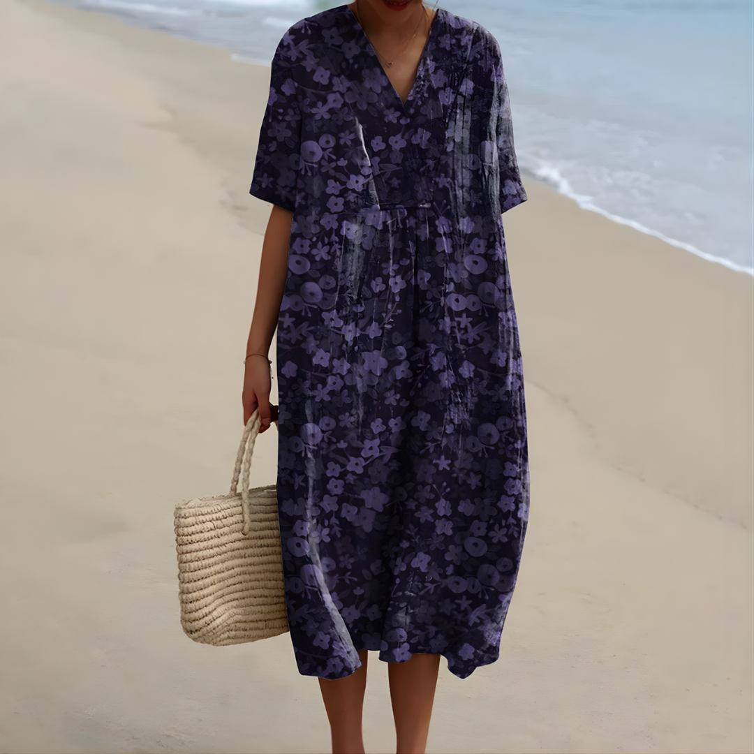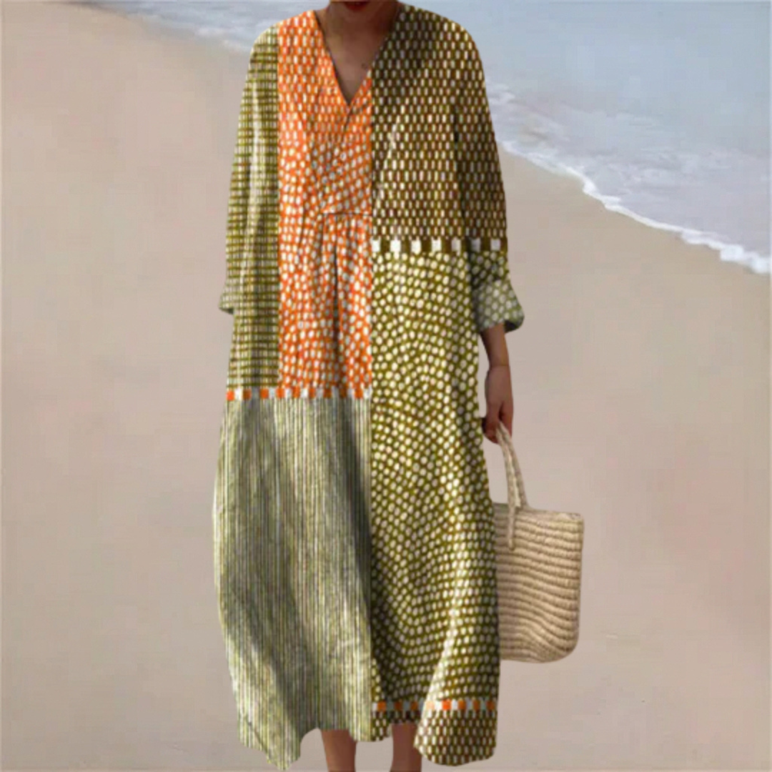 "I loved this dress so much that I immediately asked my husband to take a photo of me. I felt absolutely wonderful wearing it. The fit is incredibly flattering and the colors are stunning."